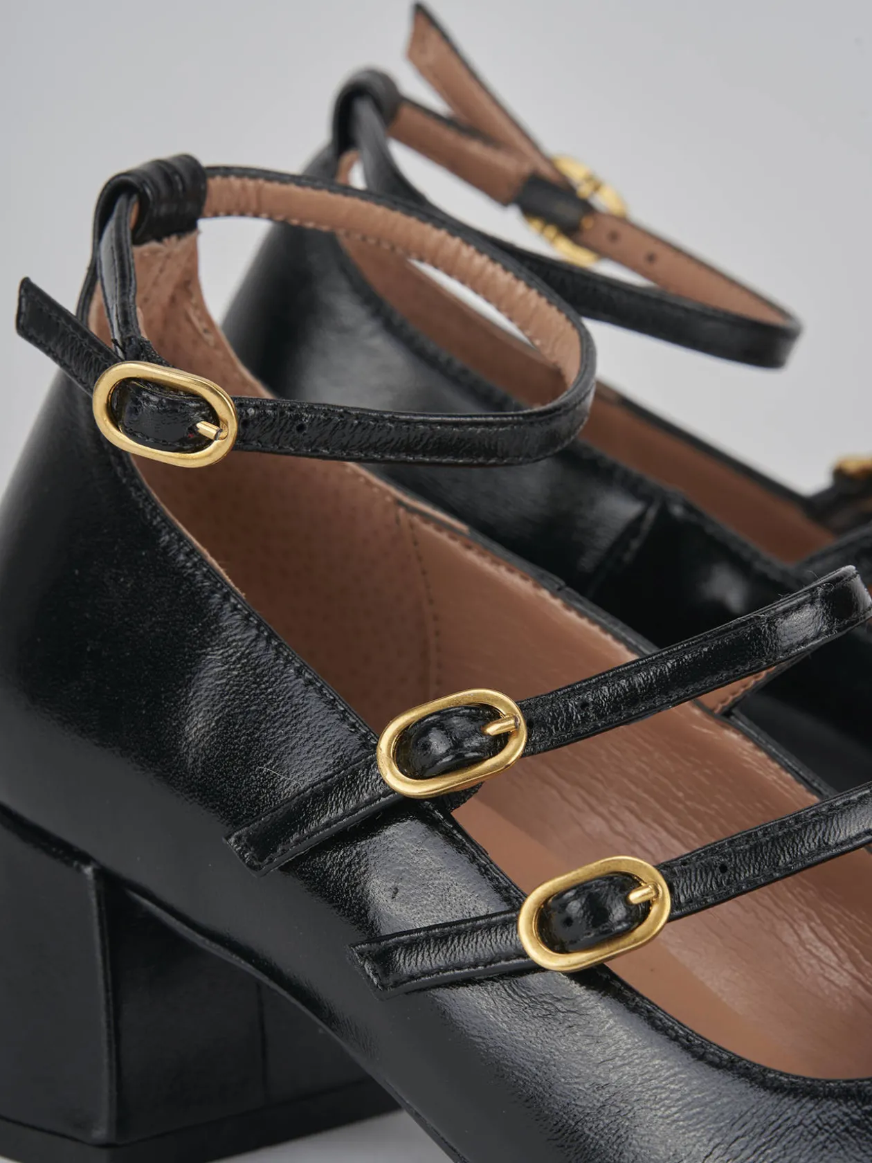 bebe’ tacco 4.5 cm fondo in gomma e soletto interno in vera pelle. tomaia in morbida pelle effetto verniciato, punta squadrata, 2 cinturini sul collo del piede e 1 cinturino in caviglia con fibbia regolabile. dalla linee definite ed eleganti, perfetto per un look cool.