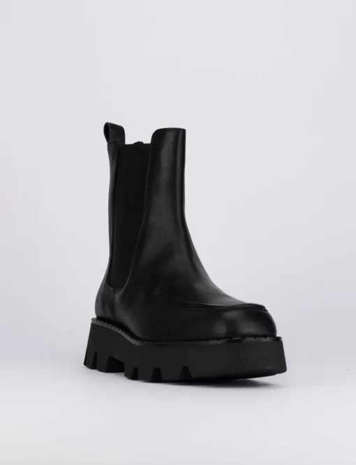 stivale tronchetto tacco 1 cm fondo gomma e soletto interno in vera pelle. tomaia in morbida pelle, punta squadrata con nuovissima cucitura, lati elasticizzati per un look cool.