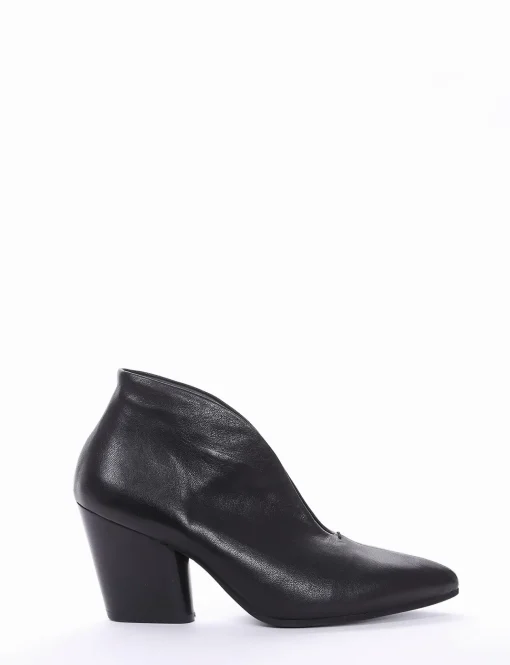 accollata tacco 7 cm, fondo in cuoio e soletto interno in vera pelle. Tomaia in morbidissima pelle nappata con punta sfilata e scollo a V sul collo del piede.