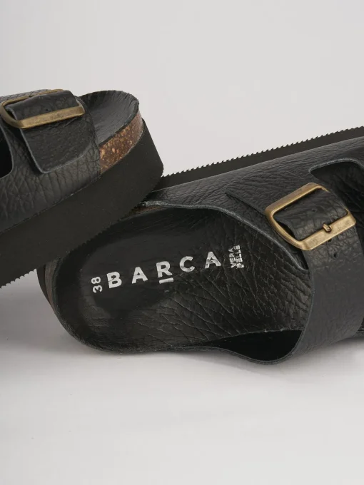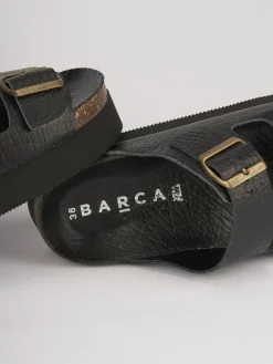 ciabatta zeppa doppio fondo in leggera gomma e soletto interno in vera pelle in fussbett. tomaia in morbida pelle in dollaro, due fasce con fibbia regolabile per un look cool.