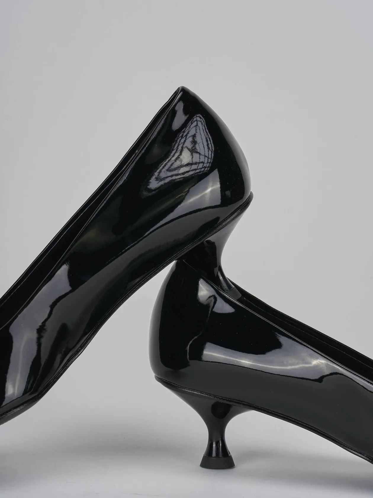 decolte’ tacco 4 cm fondo in gomma e soletto interno in vera pelle. tomaia in morbida pelle effetto verniciato, punta sfilata, apertura svasata sulla punta e tacco rocchetto. design classico che non passa mai di moda.