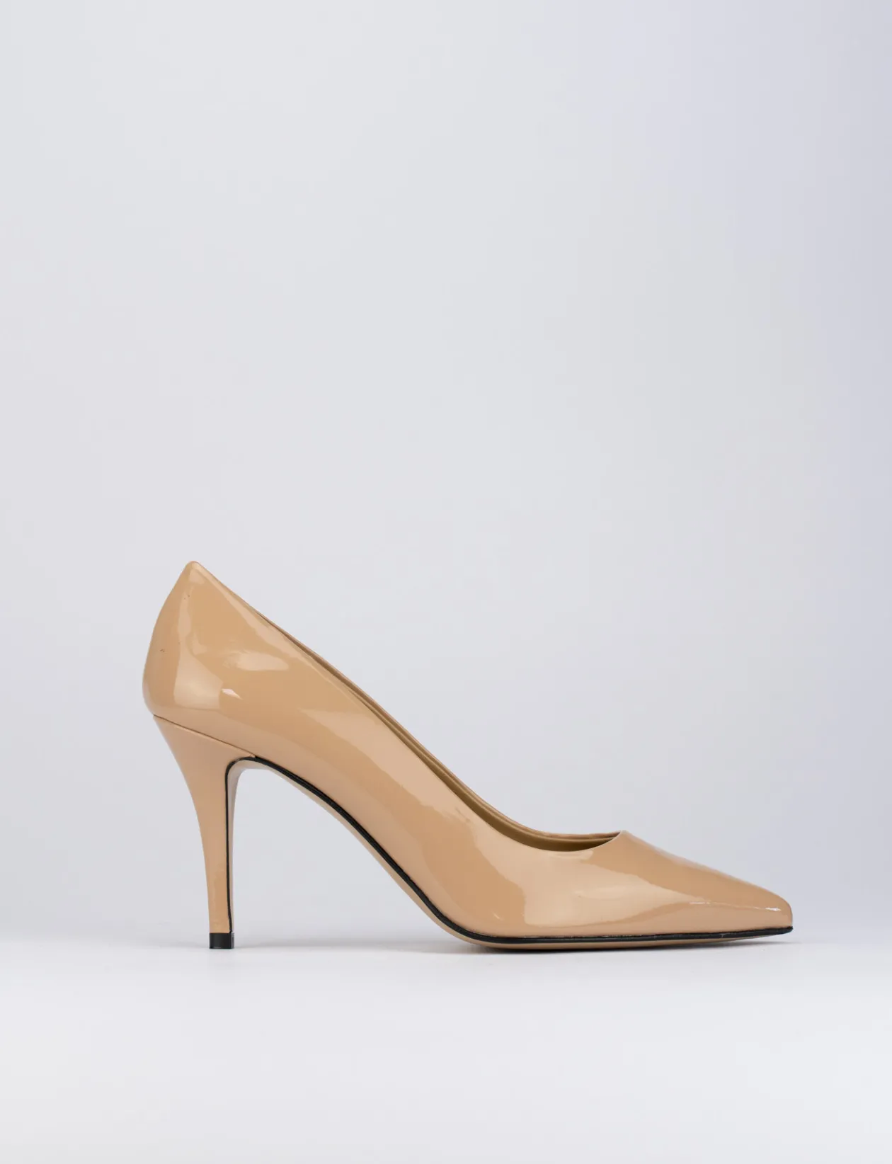 decolte’ tacco 7 cm, fondo in cuoio e soletto interno in vera pelle. Tomaia in morbidissima pelle verniciata e punta sfilata.