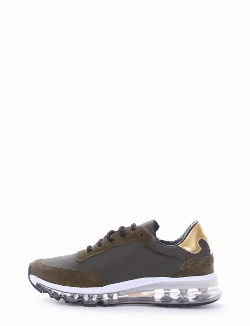 sneakers fondo in gomma e soletto interno in vera pelle. Tomaia in bellissimo tessuto con riporti in pelle scamosciata, fondo air, comodo e ideale per il tuo tempo libero.
