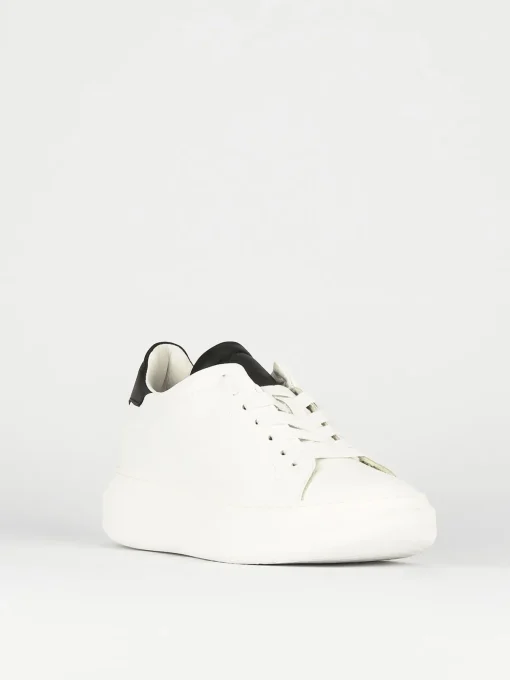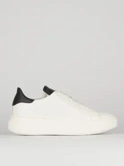sneakers fondo gomma e soletto interno in vera pelle. Tomaia in morbida pelle, lace, linguetta e topponcino in pelle nera per un look cool.