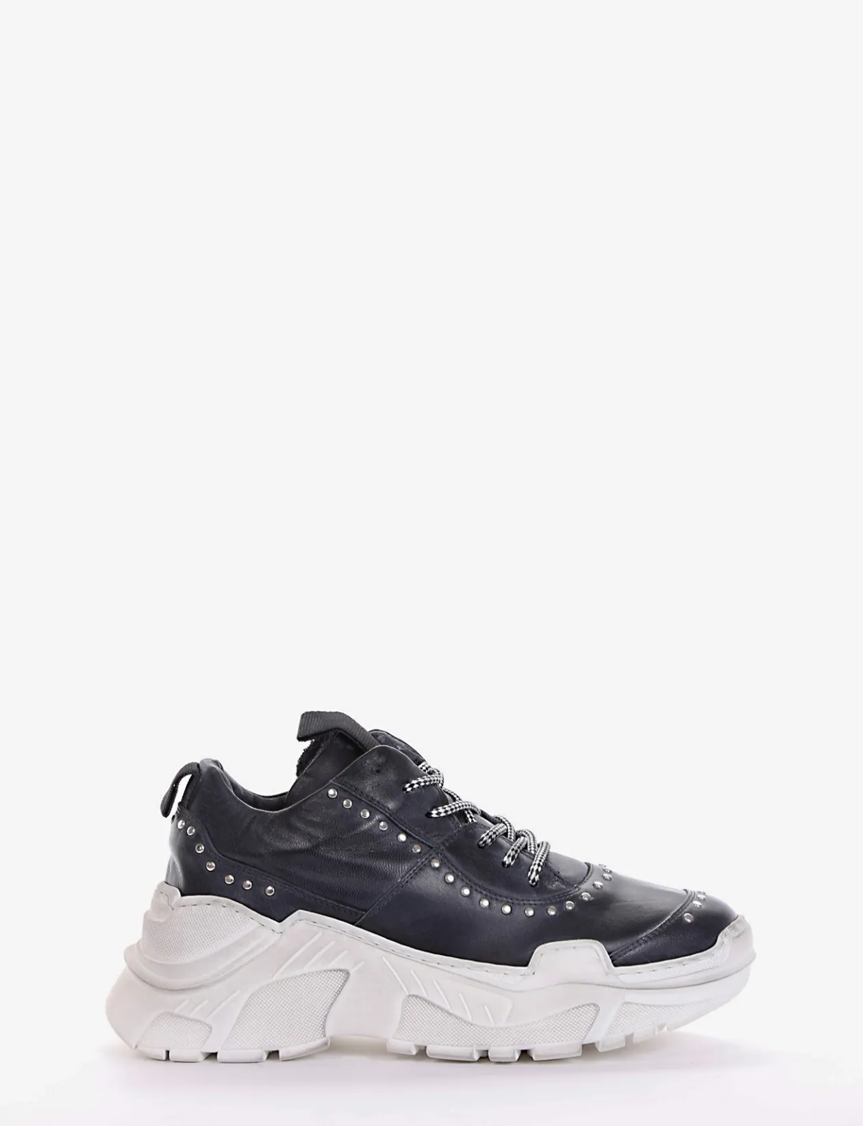 sneakers fondo alto in gomma e soletto interno in vera pelle. Tomaia in morbida pelle con particolarissima borchiatura. ideale per il tuo tempo libero ….so cool!!!