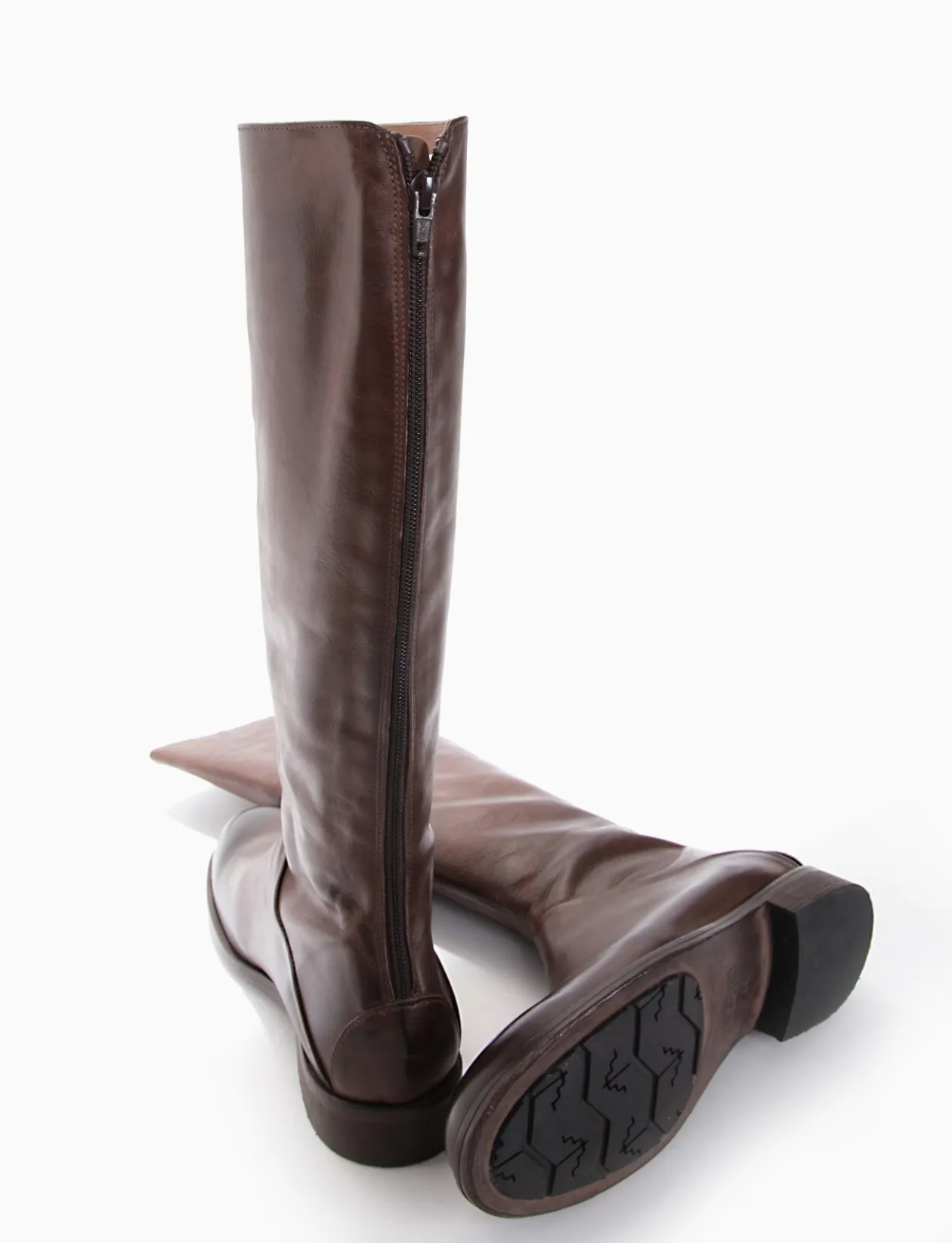 stivale tacco 2 cm, fondo in gomma e soletto interno in vera pelle. Tomaia in morbidissima pelle completamente liscia, cerniera posteriore e altezza del gambale sotto il ginocchio.